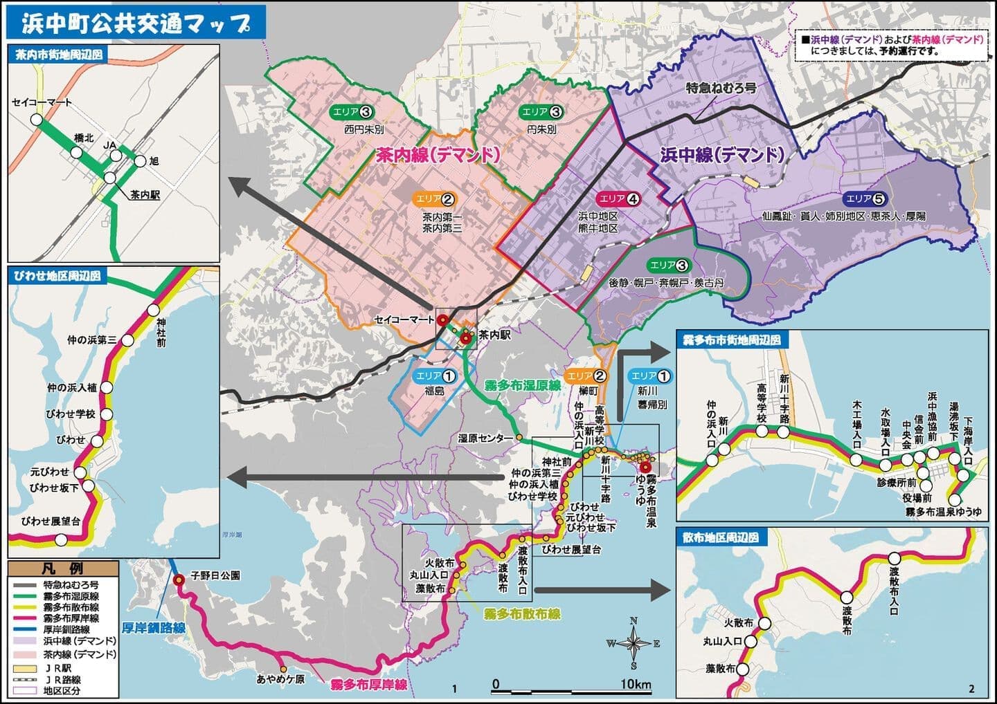 浜中町公共交通マップ 浜中町公共交通マップ窓の外には、四季折々の景色。 浜中町では、町民の生活に必要な交通手段の確保、その他旅客の利便の増進を図り、地域の実情に即した輸送サービスを実現するために、浜中町地域公共交通網形成計画を踏まえた町営バスを運行しています。 ◎詳しくは、浜中町役場ホームページをご覧ください。以下からご確認いただけます。運行情報 時刻表・運賃表
